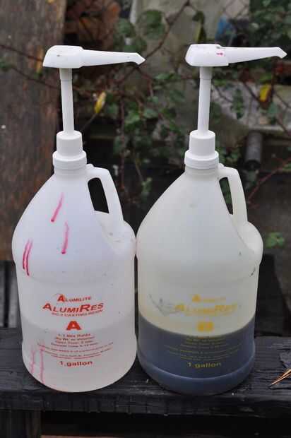 Hice algunas bodegas con un reforzado fibra industrial de alta resistencia de la lechada. Apariencia como piedra real que es agradable y es muy barato, pero su falta de fuerza en tensión limita sus opciones de diseño. Secciones delgadas pueden ser demasiado frágiles, pero es bastante económico para grandes bodegas gruesos. Un material mejor es resina de poliuretano. Esto es lo que usan los profesionales. Se trata de un sistema de 2 partes donde se mezclan volúmenes iguales de A y B, agregar algunos pigmentos y relleno si te gusta y viértalo en el molde. Yo uso un producto llamado RC-3 de Alumilite. Este material establece sorprendentemente rápido. Tienes unos minutos para conseguirlo mezclado y vertido. Si desea un color uniforme es útil totalmente mezclar el pigmento en el lado primero antes de empezar el TIC-TAC del reloj.