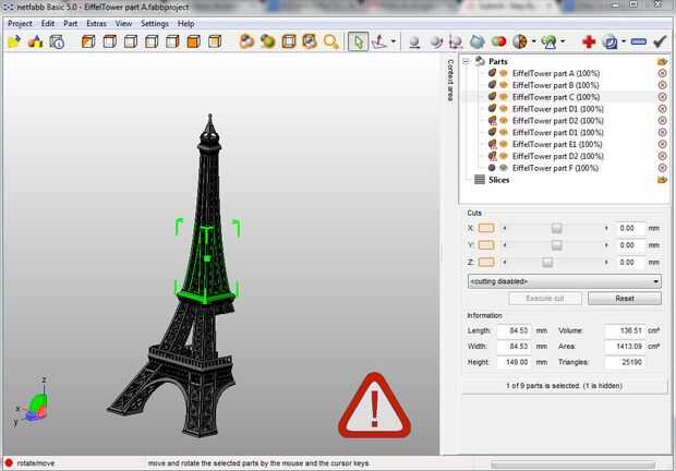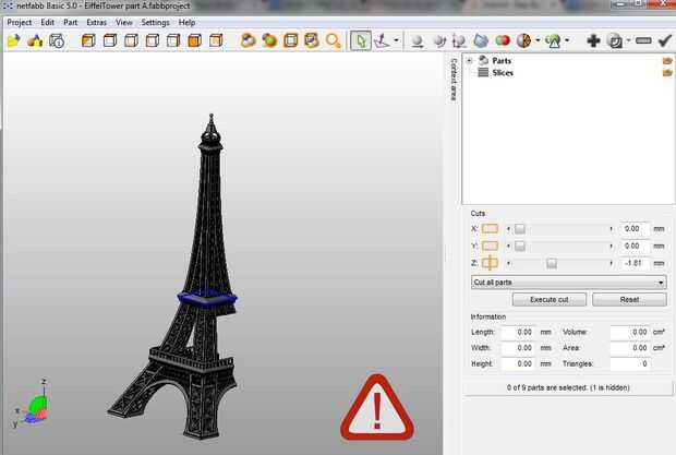 -Utilice la opción de cortes a rebanar porciones de su modelo para que la pieza más alta no excede las dimensiones de la placa de la impresora 3D construir. (En mi caso, 15cm de alto)