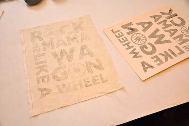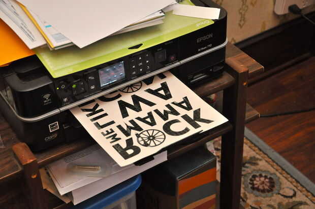 Imprimir la imagen utilizando un ajuste de "espejo" para que sea legible una vez que usted ha "sellado" lo en su tela. También puede utilizar el "borrador" o algunos otros que reduce la cantidad de tinta que no mancha. (Puede ver que mina está untando ligeramente).