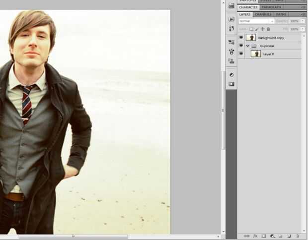 Lo primero que queremos hacer es duplicar la capa de la persona y ponerla en un grupo de duplicados para que podemos siempre volver a los originales si es necesario.