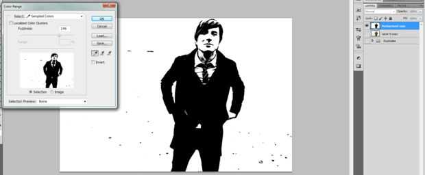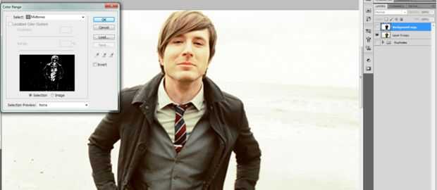 Para agregar cierta profundidad el tema, ir a selección > gama de colores y juego de la selección de medios tonos. Con los medios tonos seleccionados, vaya a Edición > rellenar y rellenar la selección con negro. Combinar las capas de tonos medios y umbral.