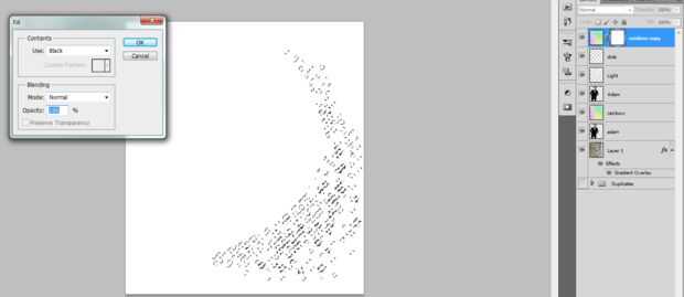 Por lo tanto, ctrl y haga clic en el capa de cadena para recibir a todos ha seleccionado, luego Alt + haga clic en la máscara sólo mostrarlo. Mi máscara apareció blanco al principio, así que voy al llenarlo con negro o ir ctrl + I para invertir el color, a continuación, anule la selección. Ya que sólo queremos que la cadena a mostrar color, invertido el color para mostrar la cadena como blanco.
