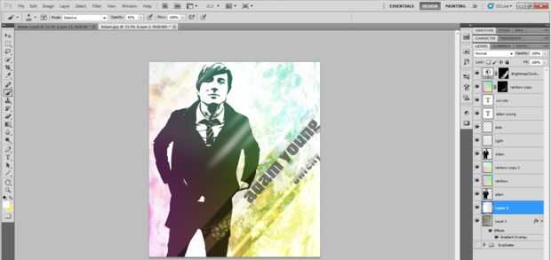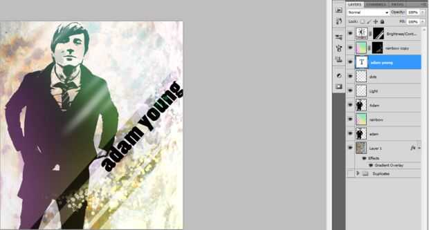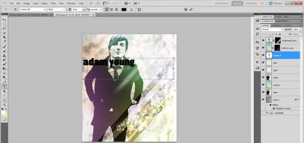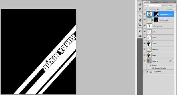 Ahora escriba las palabras que desea utilizar (mi fuente es STD de álamo) y girarlas-48 grados. alinear para sentarse a lo largo de una de las líneas y ajustar el tamaño a donde las palabras se superponen con las líneas. Ctrl + clic para seleccionar las palabras y alt + clic en la máscara de ajuste. Sin deseleccionar, invertir el color de la selelction. Donde las palabras se superponen las líneas deben aparecer negro mientras que el resto debe ser blanco. Repetí esto con el nombre de la banda en la línea inferior. Mantenga las capas de palabras y bajar su opacidad al 25% para que ayuden las palabras para destacar.