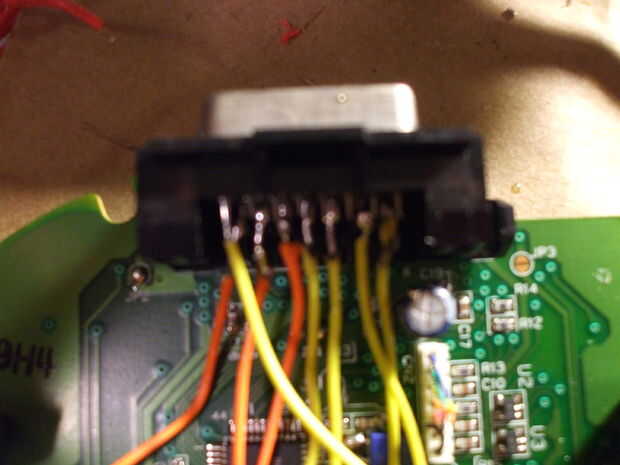 Por suerte para nosotros Microsoft ha incluido soldadura puertos para poder acceder fácilmente a cada botón. En el PCB, hacia abajo a la izquierda y la derecha notará unos "agujeros" con las letras al lado de ellos; corresponden a los botones en el teclado. Se terminan de pasar los cables desde cada puerto de soldadura al interno DB-15 para que no tengamos que cortar el PCB innecesariamente. Tomar a algunos diques y corte las piezas verticales en la fila superior de DB-15, exponiendo ambas filas. Mida la longitud de alambre y dejar cierta holgura para que la cáscara se puede cerrar cuando vuelve a montar; luego de la soldadura entre las almohadillas de soldadura y cada pin DB-15. He encontrado que poner 22 medidor de cobre sólido a través de los agujeros, luego aplicar algunos flux y soldadura hizo una buena conexión. Sin embargo, hacer todo lo posible para no quitar los cables una vez están fijados, ni forzar los cables a través de (uso de un más pequeño calibre o no estañar los cables primero). Otra cosa puede extraer la almohadilla metal y pierden su conexión.