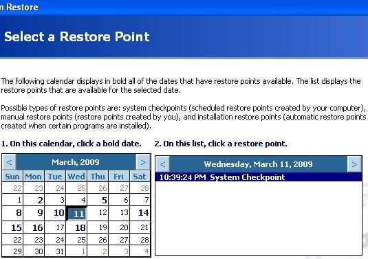 Para restaurar el equipo a una de estas fechas, haga clic en el número y luego el botón siguiente.