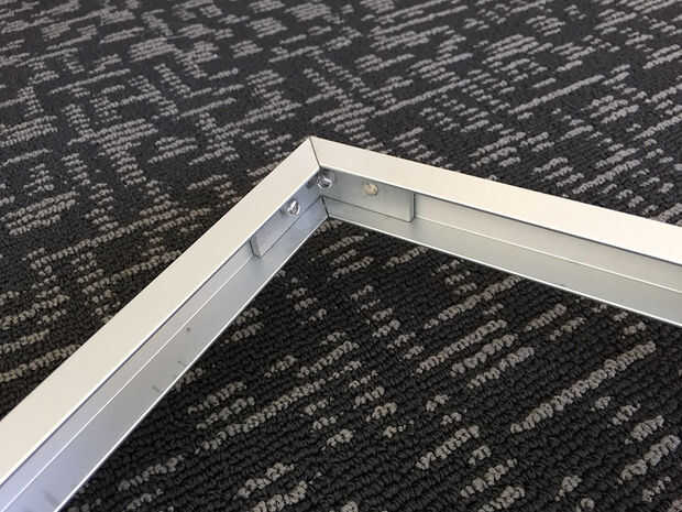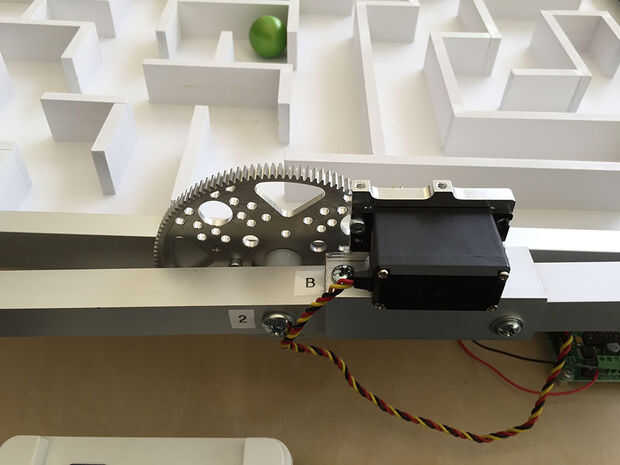 El marco interno es más pequeño en una dimensión para dejar espacio para el engranaje para controlar la rotación de la tabla interna. Es U formada de acción para capturar el elemento de laberinto y haya un extremo fijado con tornillos así que el laberinto se puede cambiar. Soportes de ángulo similares establecido en las esquinas.