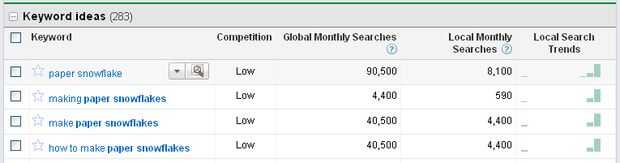 Puede utilizar el selector de palabras clave de Google otra vez para ver los patrones de término de búsqueda. Una vez iniciado sesión con una cuenta de Google la columna de las tendencias de búsqueda locales muestra que meses tienen la mayoría de las búsquedas.