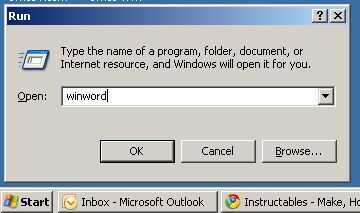 Inicio -> ejecutar (o use la tecla de Windows y pulsa R) tendrás un pequeño diálogo para ejecutar comandos de texto. Inicie Word escribiendo "