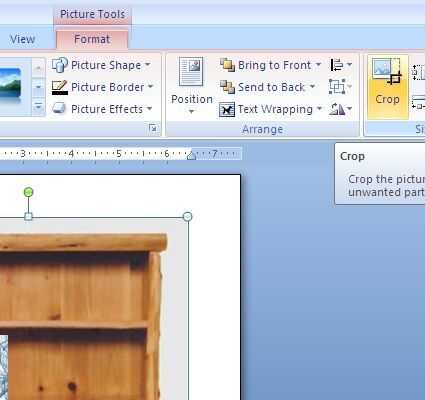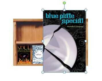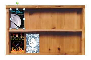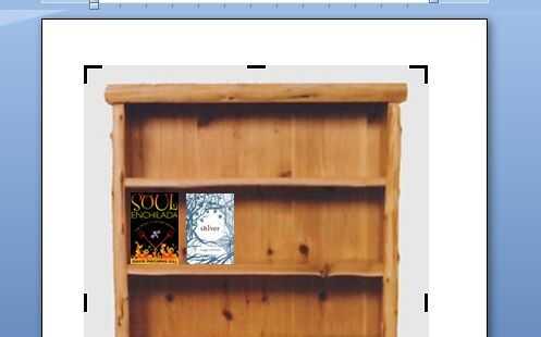 Mis portadas de libros son como las quiero, pero mi biblioteca es demasiado grande.  Sólo quiero un par de estantes accesibles.  Con aquel cuadro seleccionado, puedo hacer clic en el icono de cosecha bajo la herramientas de imagen > formato ficha y a continuación, arrastre las asas para eliminar partes de la imagen.