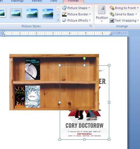 Preste atención a cómo se superponen las cosas! Sus imágenes se apilan en capas en el documento en el orden que se les pegan. Si uno está bajo otra, y que desea en la parte superior, seleccione traer al frente de la herramientas de imagen > formato ficha.