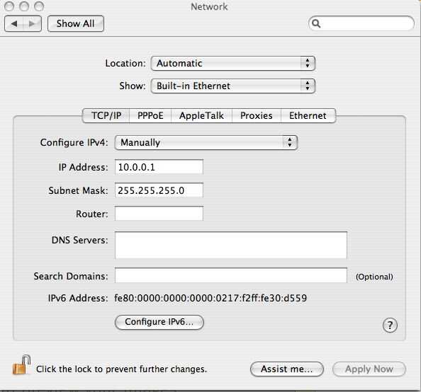 2. Asegúrese que su ubicación se establece en "Automático" y mostrar se establece en "Ethernet incorporada".