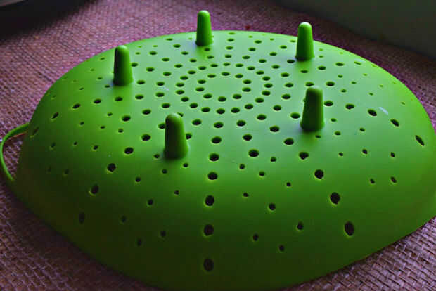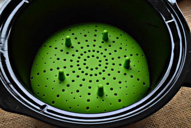 Usted necesita encontrar un colador que cabe en su olla de cocción lenta. Tuve este vapor vegetal silicio flexible de mentira alrededor de la casa. Se puede usar un pequeño colador colador o malla convencional. Básicamente cualquier cosa en forma de cúpula que tiene algunos agujeros en él a trabajar.