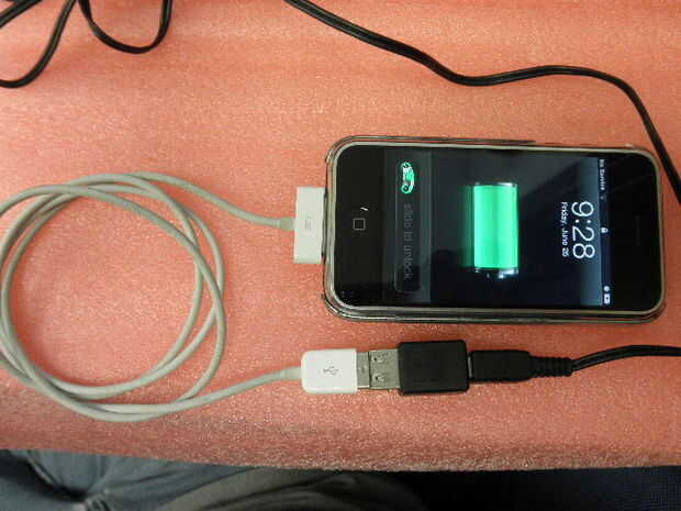 El dispositivo comienza a cobrar si no es así, es posible el cargador viejo no tiene suficiente corriente (es decir: 200mA) para iniciar el proceso de carga. Si ese es el caso usted puede pedir que tus amigos si tienen cargadores viejos que ya no utilizan. O entra en el mercadillo local y encontrar una usada de $0,50, si tienes suerte, que yo lo hice!