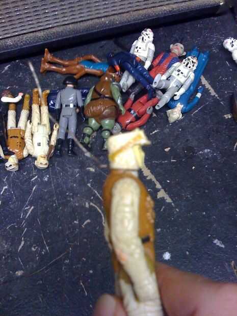 Tomar varias pulgadas de alambre córtalo aproximadamente 4-5" y envolver alrededor de una cabeza de figuras de acción. Necesitas unos rollos de alambre trenzado hasta mantener la figura en el lugar y bastante sobrada para formar un gancho para colgar de una rama de árbol. Tenga cuidado de no torcer demasiado apretado, esto ha llevado a la degollación accidental de algunas de mis figuras.