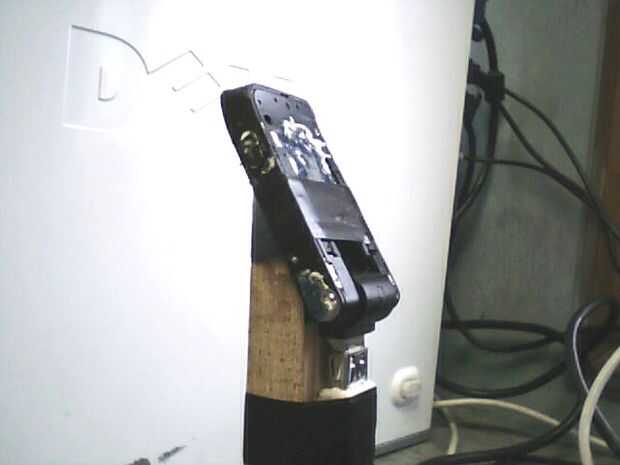 Colocar el módem en el montaje y fijarlo con una tira de cinta (ver fotos abajo)... Hacer otra vez, asegúrese de que el módem está en el mismo lugar básico como la pastilla original. No tienes que ser perfecto, pero de cerca como sea posible. Ahora, conecte el cable de extensión USB para el módem. Firmemente Enrolle cinta aislante alrededor del modem, el extremo del cable USB, y soporte hasta que esté completamente cubierto, este el tiempo en la prueba. También, un spray de líquido de la cinta eléctrico como el tipo de Performix proporcionará protección adicional si se rocían sobre la parte superior de la cinta. Una alternativa a la cinta sería sencillamente una bolsa grande de plástico sobre el módem y la cinta en su lugar. Su montaje está completa (ver fotos abajo). Simplemente fije su montaje y su listo para instalarlo en el plato. Instalar el plato en un lugar normalmente vería uno (ver paso cuatro, partes y referencia).