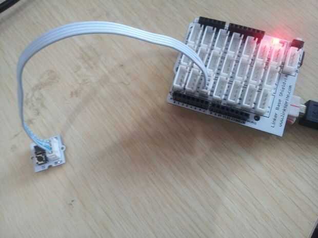 Conectar el enlazador 1 × 2 botón matriz el escudo base [D2 D3] usando un cable de vinculador.
