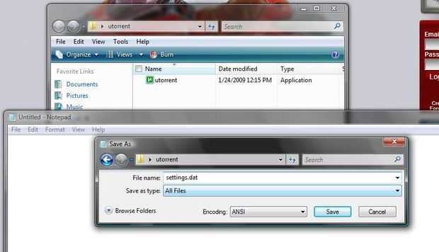 con eso hecho, entrar en Bloc de notas y guardar un documento en blanco llamado "settings.dat"