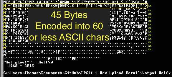 UUE almacena y envía los datos en las líneas. Una línea de datos UUE consisten en un carácter de inicio, lo que representa cuántos bytes han sido codificados en la línea (no cuántos caracteres UUE están en la línea) usando un número de 6 bits como un carácter ASCII. La línea de datos UUE termina con un carácter de línea nueva (es decir, ' \n'). Por último, una línea UUE está limitada a 45 bytes de datos. Esto significa, la cantidad máxima de caracteres de datos en línea de UUE debe tener no más de 60. Y 62, si se cuenta el carácter de inicio y el carácter de final.