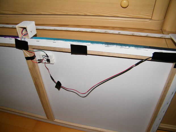 Entonces conecté todos los cables a la placa en la parte posterior, conecta un cable blanco para el fondo de mi habitación, donde se instalará el adaptador de corriente (para más proyectos en esa pared, 12V, 5A fuente de alimentación será suficiente).