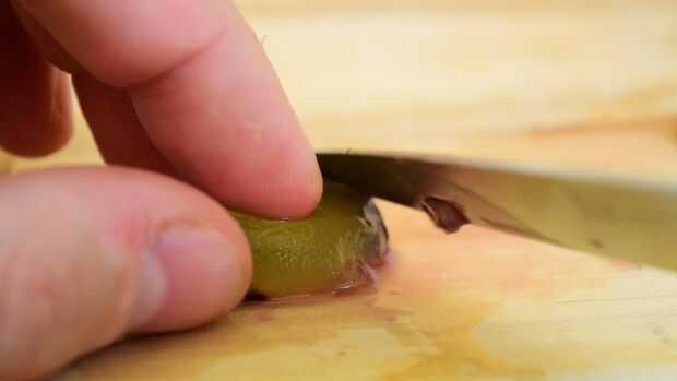 Después de si algunos quedan piel en los extremos cortar con el cuchillo.