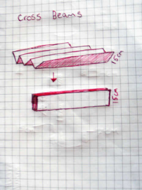 Se utiliza para apoyar los estantes y mantener separados los soportes verticales a distancias regulares. Usted tendrá que decidir la longitud de estas piezas dependiendo de las dimensiones de la cartulina, y quiere poner en los estantes. Necesita 4 vigas largas y 4 cortas para el primer módulo de la plataforma.
