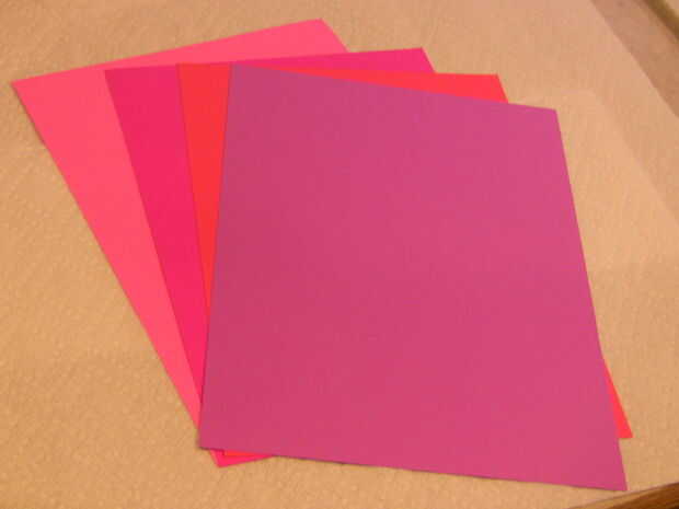 -Papel de color (color de rosa, la luz color de rosa, rojo y morado) -Tijeras -Perforadora flor -Regla -Marcadores colores (estoy usando sharpies coloridos) -Calefactorio -Cinta