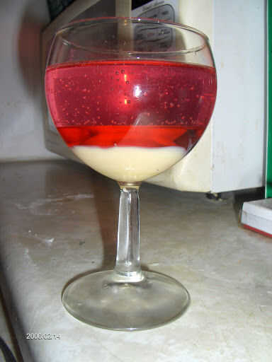 Vierta una cantidad de leche condensada en la parte inferior, seguido con jarabe (preferiblemente cualquier jarabe que el color es rojo. Aquí utilicé jarabe Cocopandan, pero se pueden utilizar jarabe de frambuesa, etc.. El jarabe generalmente el grueso tipo, no obstante si no encuentras ninguna de esas, puede utilizar jarabe de saborizante Torani, otra vez preferiblemente los rojos). Luego Vierta en top club soda y el hielo. Listo. Se establecen.
