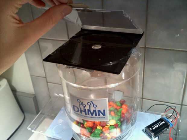 Corte o taladre un orificio en la parte superior de la lata de caramelos para verter el caramelo.
