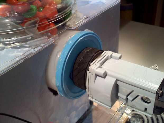Retire la tapa del tubo de twisty. Desatornille el tornillo phillips pequeño sosteniendo la rueda en el motor de iRobot. Hacer un agujero en el centro de la tapa. Atornille la tapa sobre el conjunto de rueda/motor. Coloque la tapa en el tubo de twisty. Pegamento caliente en apretado.