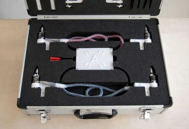 Las piezas de plástico han sido 3D en ABS. La unidad de control contiene cuatro CES, un módulo bluetooth, un receptor y un controlador de vuelo. Que he proporcionado una lista del hardware y componentes electrónicos ha estado usando, pero no dude en probar su propia combinación.