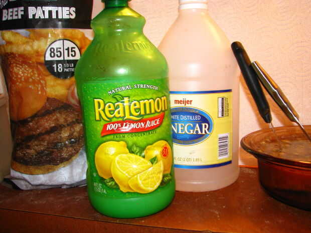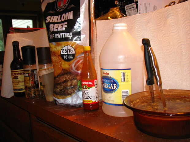 1) tomar sus hamburguesas (congelados o no) y sumergir en un recipiente de vinagre (y otras especias / salsas. su sobre todo vinagre aunque)