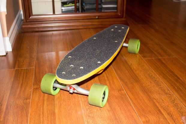 Aquí es un patín eléctrico bricolaje: la Junta de plátano! Esta placa es un patín motorizado eléctrico que puede alcanzar velocidades de 35 km/h, tiene una gama máxima de 15 km por carga y puede cargarse en menos de una hora. Pesa cerca de 11 libras, lo que lo hace perfecto para ir a la escuela o trabajo, y los lugares donde una bicicleta no sería lo suficientemente portátil. Esta Instrcutable le mostrará cómo construir la cuarta versión de mi monopatín eléctrico. Las instrucciones de los prototipos anteriores están disponibles en el siguiente paso de este Instructable.