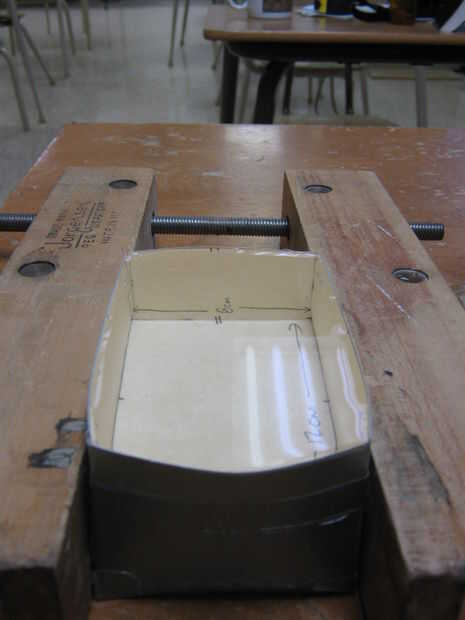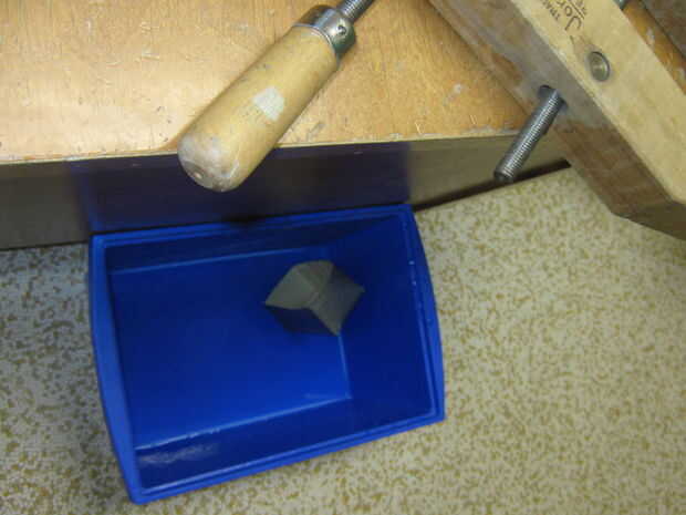 Rápidamente vierte el vaso de precipitados de 500 ml en la caja. Luego agregue agua del cilindro aforado de 100 ml hasta llegar a la parte superior. Si todavía no tienes suficiente agua, tomar prestado algunos del niño que está esperando en las alas.