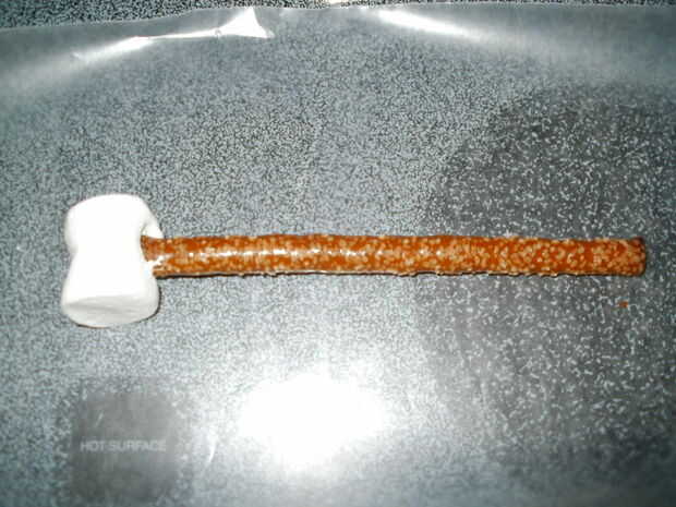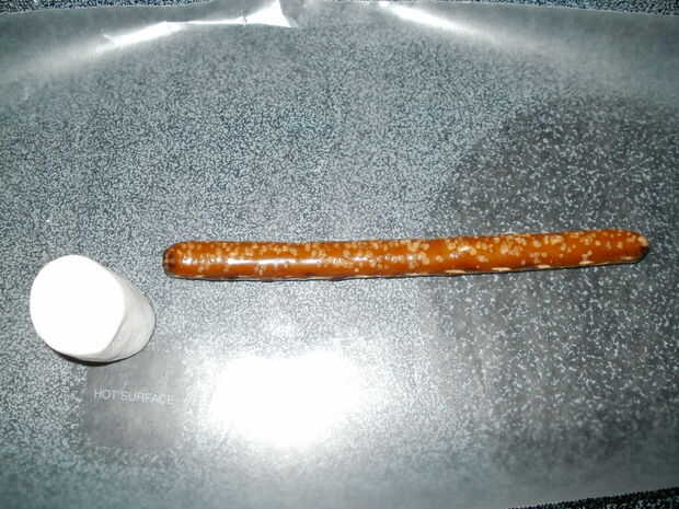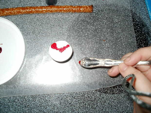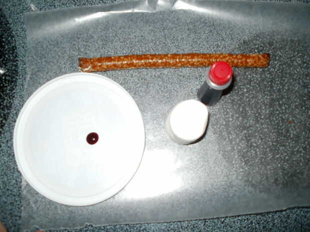 Sumerja su tenedor o cuchara en el colorante de comida rojo y ejecutar abajo el malvavisco. Esto le dará la apariencia de vasos sanguíneos rojos en el "ojo".