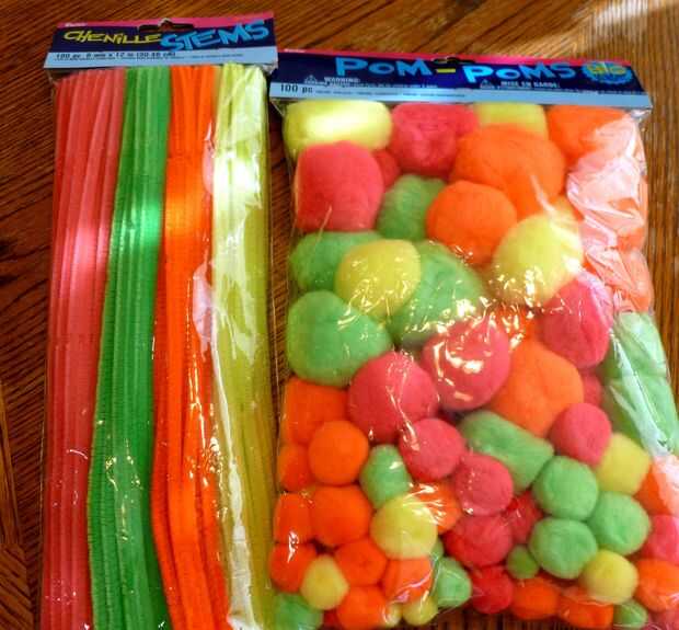- varios colores de POM-POM (por lo menos 100 - utilizamos dos bolsas para 15 chicos poco, pero creo que habría funcionado entre [100])