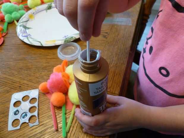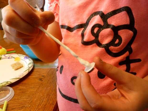 Ella me mostró dónde poner a algunos de los ojos después de que ella aplica el pegamento, y este paso probablemente tomó unos 15 minutos para hacer todos los errores.