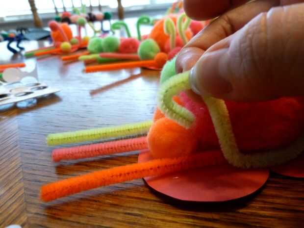 Algunos de los ojos terminaron en los extremos de las antenas, en la parte superior los pompones delanteros y en pompones levantado. Todos ellos se colocaron con amor y fue hasta ella.