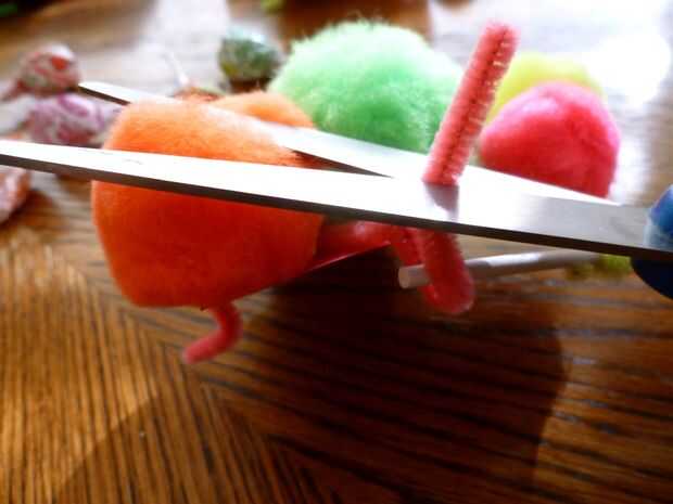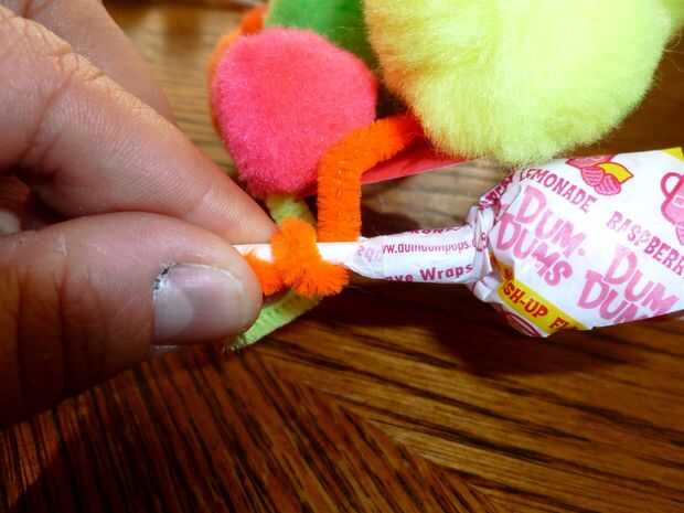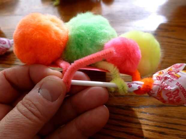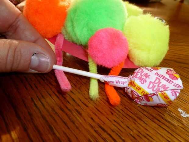 Hice la mayor parte del trabajo para esto, pero mi hija seleccionado las piruletas que con cada error. Algunos de la proyección del limpiador de pipa había rizado "pie" en el palo y si pude hacer todo lo de los pies, luego hice.