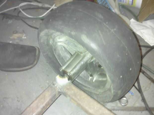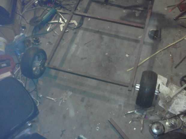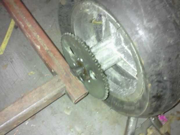 El eje de las ruedas traseras se hace de los ejes de las mini motos que había. Medimos la distancia que necesitamos para que las ruedas y piñones para borrar y cortar. Soldar el eje en el lado del marco.
