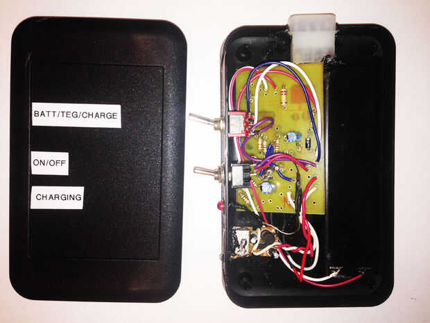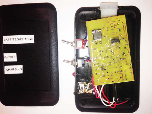 Las carga estación consta de 4 baterías NI-MH, carga controlador circuito, todo en un recinto plástico del OKW. El circuito controlador de carga consiste en un IC de Maxim DS2715 y sus componentes circundantes. La hoja de datos está en este link Maxim DS2715 hoja de datos, utiliza el circuito típico de aplicación lineal por Maxim y añadido/trucar el circuito para satisfacer mis necesidades. Usé divisores del voltaje para hacer mediciones sobre el circuito para reducir la tensión y la corriente que va en el Arduino.