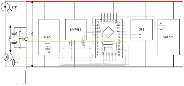 -LED encendido/apagado control se realiza a través de N-FET (IRLZ44N), que se conecta al pin 9 vía resistor de pull-down.