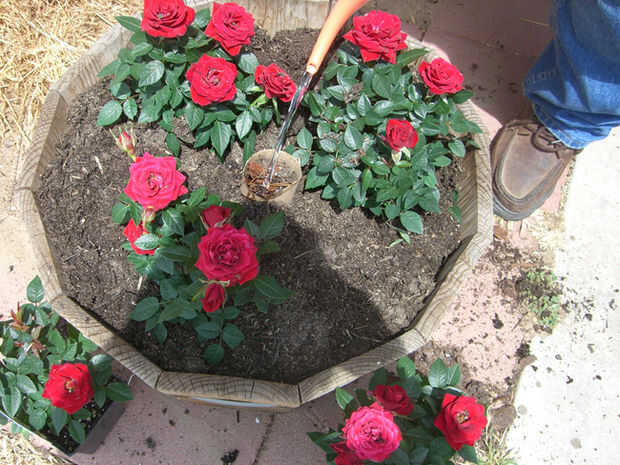 Tus rosas en y alrededor del tubo de cartón para distribución uniforme a través del suelo y la raíz del sistema de agua.