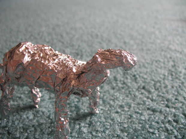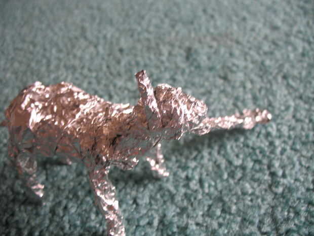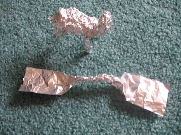 la cabeza con la ayuda de los alicates de la curva. ignorar otro pedazo de papel de aluminio
