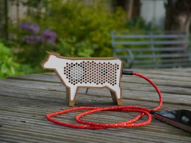 Este altavoz mini vaca es ante todo un proyecto de diseño para desarrollar mis habilidades de diseño de producto. Hubiera sido excelente para desarrollar el proyecto más y convertirlo en un producto vendible, pero por ahora sigue siendo un sueño adolescente. El siguiente instructivo le llevará a través de las etapas de fabricación del altavoz de vaca y también mencionar el diseño de packaging y fabricación. La electrónica del altavoz ha sido adaptada desde un altavoz existente. El altavoz va a pegar buena para su tamaño, pero si necesita un orador para un ambiente ruidoso partido entonces sugiero que adapta el diseño. Me gustaria tener minas cuando estoy en mi escritorio trabajando en proyectos. El orador puede ejecutarse desde cualquier dispositivo de música portátil con una salida de audio de 3,5 mm. Puede ser recargada mediante un cable mini USB. Este altavoz ejecutará hasta 6 horas de una sola carga.