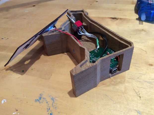 6. Ajuste el panel 3D impreso en la cubierta y el pegamento en su lugar. Asegurar que la entrada USB en la placa se adapta en la ranura del panel impreso 3D
