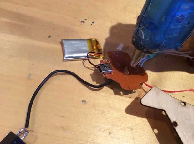 4. Pegamento caliente la batería en la parte posterior del PCB