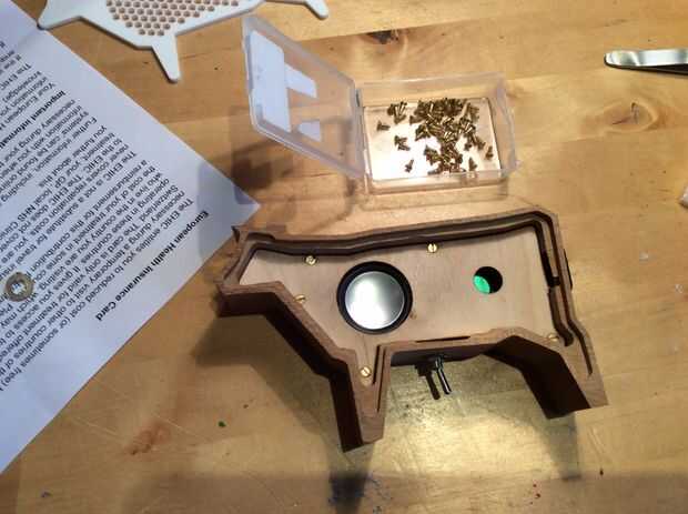 12. Perfore agujeros de 1mm en el caso donde los agujeros de madera de capas corresponden luego atornillan la madera con tornillos de latón de 2 x 3/8.