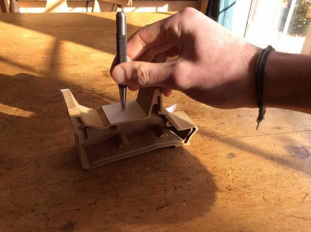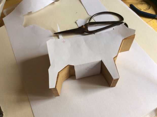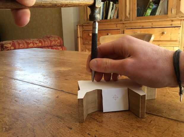4. Centro de golpe a través de la plantilla para hacer una impresión en la vaca.