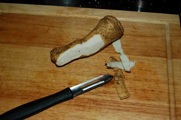 • pelar la raíz de rábano picante