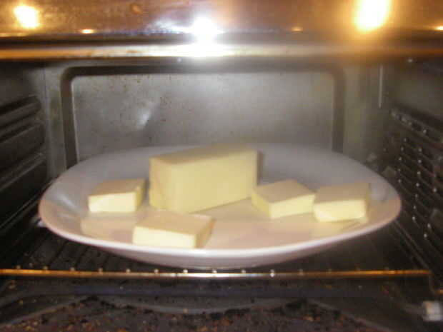 Derrita la mantequilla a fuego bajo. Viértalo en un plato para mojar fácil de la masa. Añadir aceites esenciales a la mantequilla, si se utiliza.
